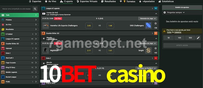 O 10bet casino oferece uma grande seleção de opções de apostas em e-sports com probabilidades competitivas